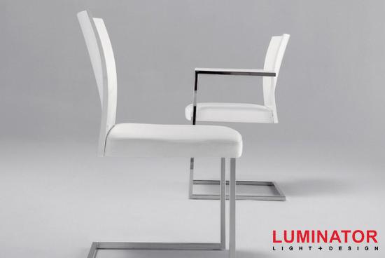 Каркас из полированного или матового хромированного металла. Спинка выполнена из фанеры итальянского ореха, бука. Сиденье мягкое.