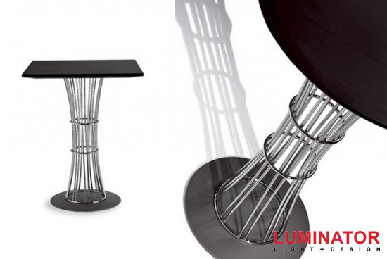 Стол с основанием и ножками из матового или полированного метала. Столешница из шпона бука или МДФ.