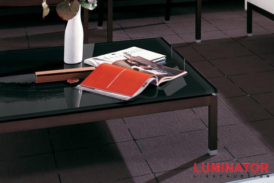 Столик, доступен в двух различных размерах. Каркас из бука, столешница из черного закаленного стекла.